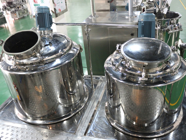 攪拌形式——主鍋為框式攪拌加均質頭,油水鍋有錨式攪拌、分散盤以及漿葉式攪拌等。